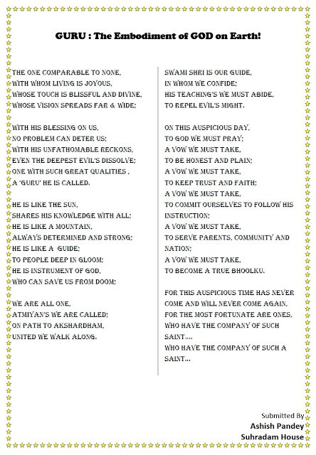 GURU: The Embodiment of GOD on Earth August 16, 2011/0 Comments/in AVM Updates, Value Based Education /by AVM Teachers Guru – by Ashish Pandey (Std 12 Science) https://www.avm.ac.in/wp-content/uploads/2011/08/Poem-on-Guru-Ashish-Pandey.jpg 640 444 AVM Teachers http://www.avm.edu.in/wp-content/uploads/2015/11/avm-header_10.png AVM Teachers2011-08-16 10:26:002015-05-25 00:15:26GURU: The Embodiment of GOD on Earth