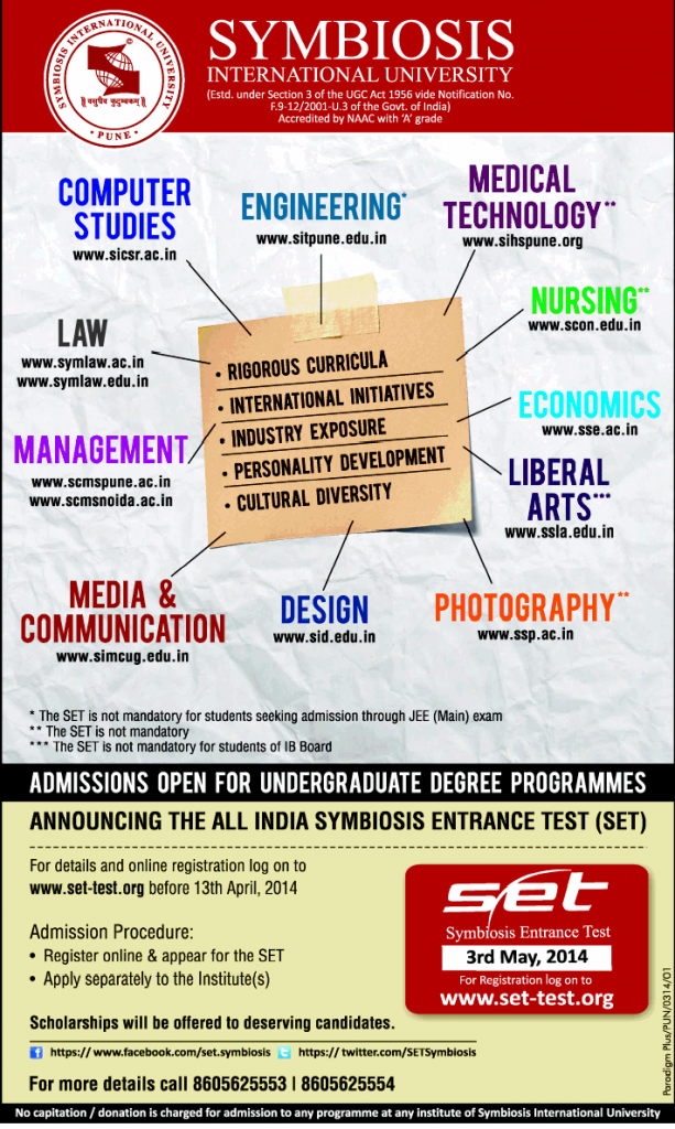 Admission Announcements March 23, 2014/0 Comments/in Career /by AVM Teachers For more information, please visit: http://www.set-test.org/ For more information, please visit: http://www.nchm.gov.in For more information, please visit: http://kea.kar.nic.in/ https://www.avm.ac.in/wp-content/uploads/2014/03/Symbiosis-Entrance-Test-2014.png 1187 711 AVM Teachers http://www.avm.edu.in/wp-content/uploads/2015/11/avm-header_10.png AVM Teachers2014-03-23 15:22:002015-05-25 00:15:16Admission Announcements