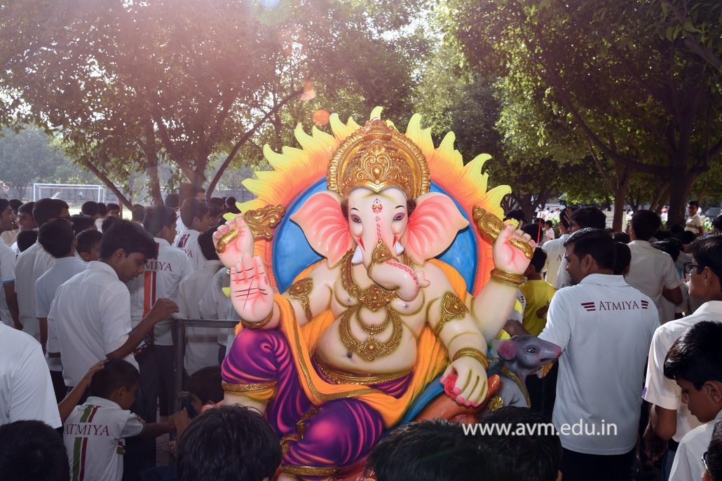 आत्मीय विद्या मंदिर एक ऐसा विद्या मंदिर है जहाँ पर छात्रों को शिक्षा के साथ-साथ विशेष रूप से संस्कार एवं आध्यात्मिकता का ज्ञान दिया जाता है | छात्रों के अंदर भक्ति भाव का सिंचन हो उसी उद्देश्य से विद्यालय में अलग-अलग धार्मिक त्योहार मनाये जाते हैं | उन त्योहारों में से इस साल विद्यालय में गणेश चतुर्थी का त्योहार हर्षोल्लास के साथ मनाया गया | इस वर्ष गणेश चतुर्थी के दिन 13 सितंबर 2018 शाम 4 बजे सभी छात्रों ने और अद्यापकों ने मिलकर गणपति जी का बड़े उत्साह के साथ स्वागत किया | विद्यालय प्रांगण में छात्रोंने गणपतिजी की मूर्ति के साथ प्रदक्षिणा की, तत् पश्चात विद्यालय के प्रार्थना खंड में मूर्ति स्थापन किया गया | यहाँ पर पाँच दिन तक गणेश वंदना एवं पूजा-अर्चना हुई और पाँचवें दिन 17 सितंबर 2018 शाम 4 बजे गणेश जी की मूर्ति के विसर्जन हेतु सभी छात्रों ने उत्साह के साथ विसर्जन में भाग लिया | और विघ्न हर्ता गणेश जी को हृदय से प्रार्थना की अगले साल जल्दी आना | सभी के लिए मंगल कामना करते हुए मूर्ति का विसर्जन नदी के अंदर भक्ति भाव से किया गया | सच में एक अद्भूत संस्मरण कह सकते हैं | छात्रों ने इस त्योहार का भरपूर आनंद लिया |