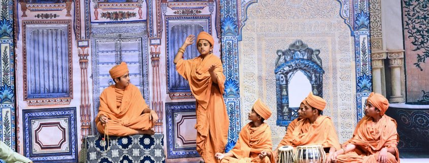 It is rightly said, “Focus is the key to success.” ‘Focus’ in Gujarati means ‘એકાગ્રતા’. At Atmiya Vidya Mandir, we organize creative assemblies to help the children become aware of the hurdles of student life and how to overcome them. On Friday, 26th October 2018, Satyam House enacted a small drama titled “ચાલો, થઈએ ગુણાતીત જેવા”, demonstrating how to avoid distractions and focus on the task assigned. Two prasangs were performed, one from the life of Gunatitanandswamiji and one from Param Pujya Swamishree’s life.