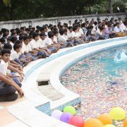 India is blessed with the delightful celebrations, not only fun-filling in life but also spiritually inspiring. Each festival has its own space and significance in India.One amongst many such festivals, was celebrated at Atmiya Vidya Mandir on 5th September, 2014. Resembling the purification process of body, mind and soul, it is named as Jal Jhilani Ekadashi, one of the most auspicious festival of Hinduism. The celebration took place at school’s swimming pool, wherein the whole school was present, from every elderly person to the youngest one.