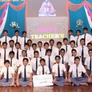 As soon as the mid-terms got over, the entire grade (both science and commerce classes combined) went into a discussion spree. The students were very enthusiastic and worked very hard for the preparation of function. They meticulously planned the details of the function and were even worked till late in the night. Their hard work and coordination made it possible to have all the planned tasks executed successfully in very less time. But the most remarkable thing was that the entire standard worked together as ONE unit.The 5th September event kick started with a gracious welcome of the teachers by students doing their poojan right at the entrance of the hall. The event hosts, Uttambhai Italiya (11 Science) and Deepbhai Chamaria (11 Commerce) then invited the dignitaries for lighting of the ceremonial lamp by the. For the understanding of all that were present, the hosts presented a very enlightening video of Lord Krishna in which He defined the true meaning of ‘Samarpan’.Thereafter, a heartfelt musical tribute was offered by Anandbhai Pandya (11 Science) and Abhishekbhai Mandaviya (11 Commerce). To further add charm to the musical saga, we had students from grade 10 to express their gratitude through a melodious song.We then had glimpses of some beautiful moments that our beloved teachers have spent with the students. Moreover, a surprise element was added to this celebration for the first time: video tribute with students (past and present) expressing their feelings about teachers.