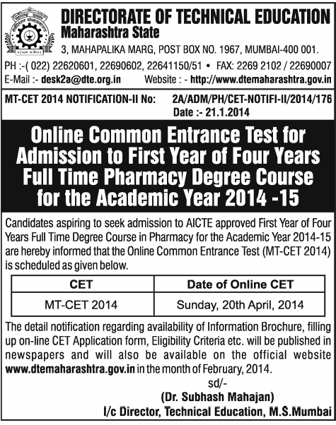 AVM Teachers2014-01-22 10:23:002015-05-25 00:15:18MT-CET 2014 Notice for Pharmacy courses in Maharashtra