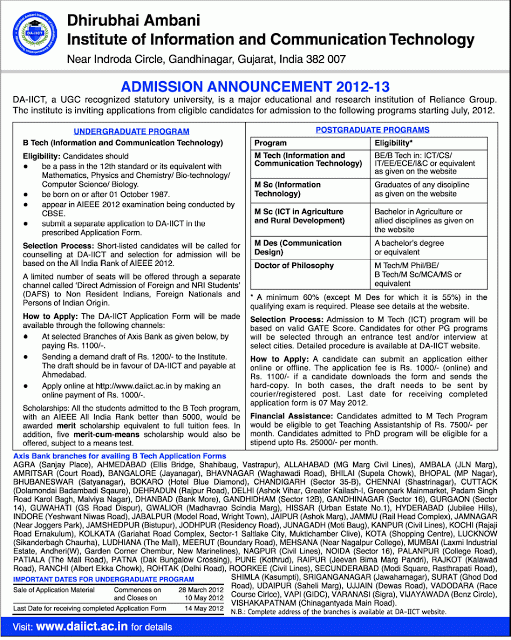 IIIT-Delhi Admission Notice for BTech-2012 courses