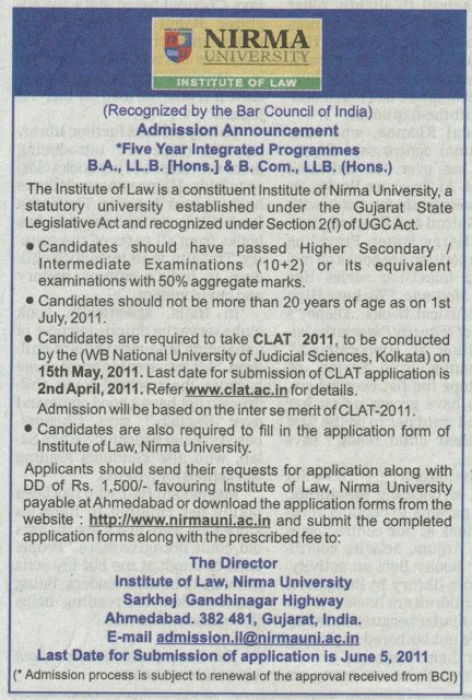 /0 Comments/in Career /by AVM TeachersBelow are admission announcements based on the 12th Boards for undergraduate/post-graduate degrees from Nirma University in Law and from DA-IICT for various technical courses. Both Nirma University and DA-IICT are among the top-ranking academic institutions at a national level in India.